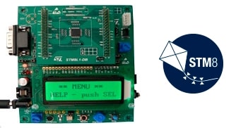 The motherboard and daughterboard are a complete development platform for the STM8L101 microcontroller with comparator, I2C, SPI, USART and SWIM debugging support.
