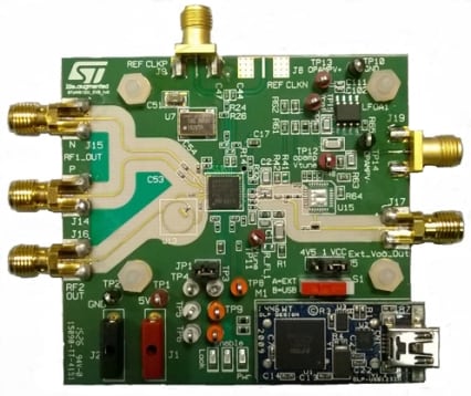 - Evaluation Board for STuW81300, Wideband RF/Microwave PLL fractional/integer frequency synthesizer with integrated VCOs and LDOs.