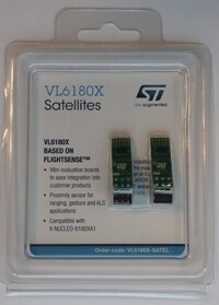 The VL6180X satellite boards are hardware add-ons for the X-NUCLEO-6180XA1 expansion board. Up to 3 satellite boards can be connected to the X-NUCLEO-6180XA1 expansion board, enabling multi sensors applications.Satellite board can be used as well for basic gesture recognition applications.Thanks to its 2.8 V regulator, the VL6180X satellite board can be used in any application with a 3.3 to 10 V supply.The part supporting the VL6180X module, 2.54 mm connector and output regulator is scored so that developers can break off the mini PCB for use in a 2.8 V supply application using flying leads. This makes it easier to integrate into development and evaluation devices due to its small form factor.