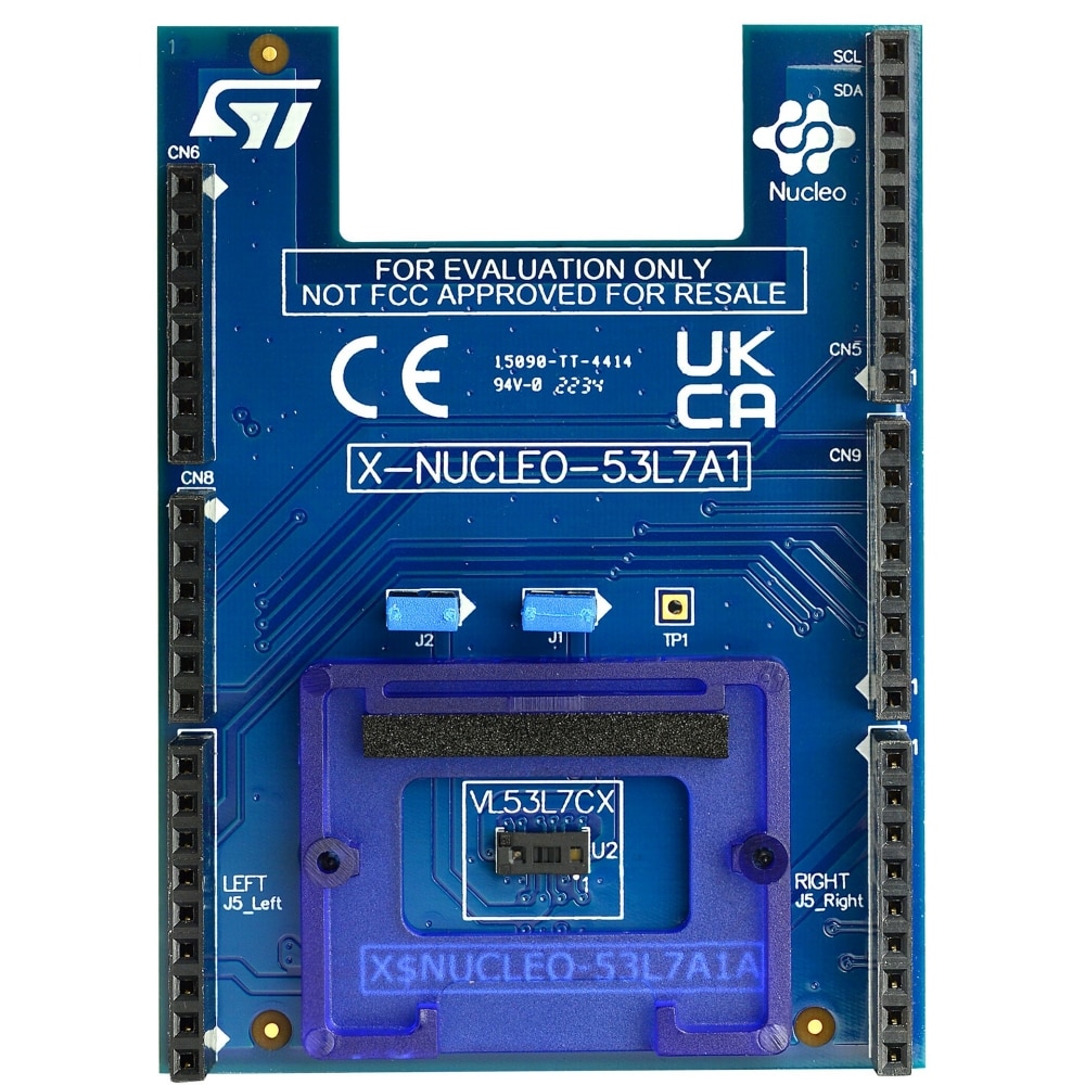 X-NUCLEO-53L7A1是一款扩展板,适用于任何配备Arduino® R3连接器的STM32 Nucleo开发板。它提供了完整的评估套件,支持用户学习、评估和开发基于具有90° 视场的VL53L7CX飞行时间8x8多区域测距传感器的应用。