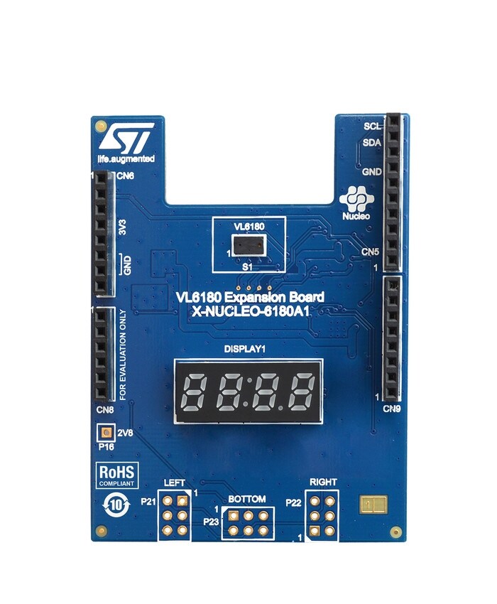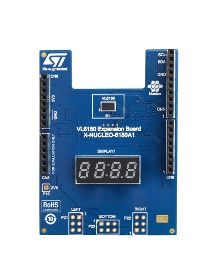The X-NUCLEO-6180A1 expansion board features the VL6180 proximity sensor, based on ST’s FlightSense, Time-of- Flight technology. It is an evaluation board that provides an introduction to the proximity ranging capabilities of the VL6180 module.