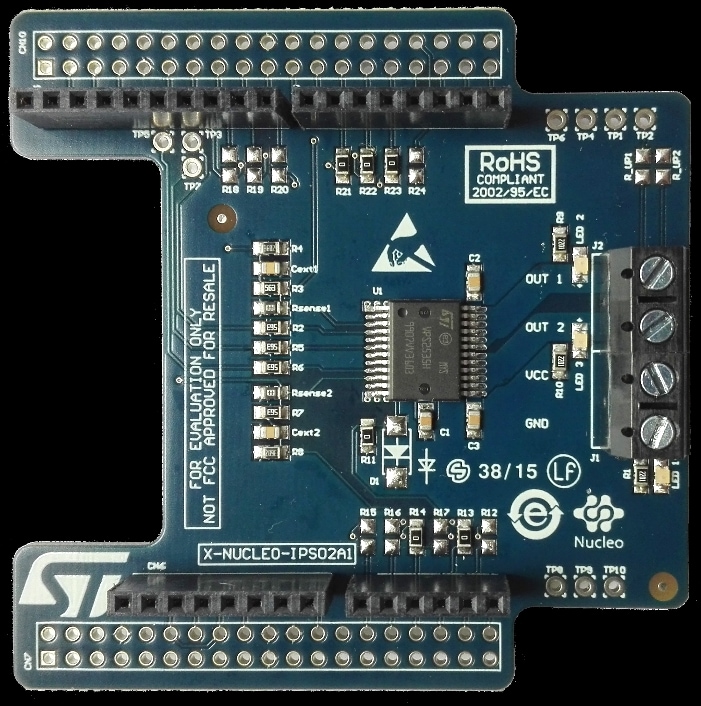 The X-NUCLEO-IPS02A1 provides an affordable and easy-to-use solution for driving grounded loads (i.e. heating elements, solenoid driver, LED driver, light bulb driver, pumps relay replacement, and fans) in STM32 Nucleo projects.