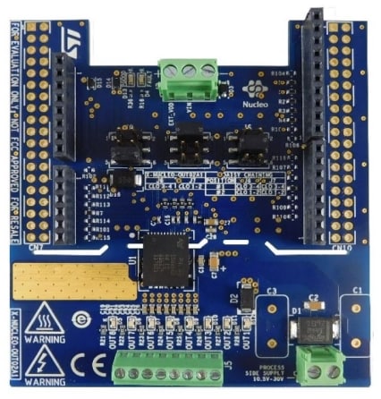 X-NUCLEO-OUT02A1直接与由GPIO引脚和Arduino® R3连接器驱动的STM32 Nucleo上的微控制器相连。