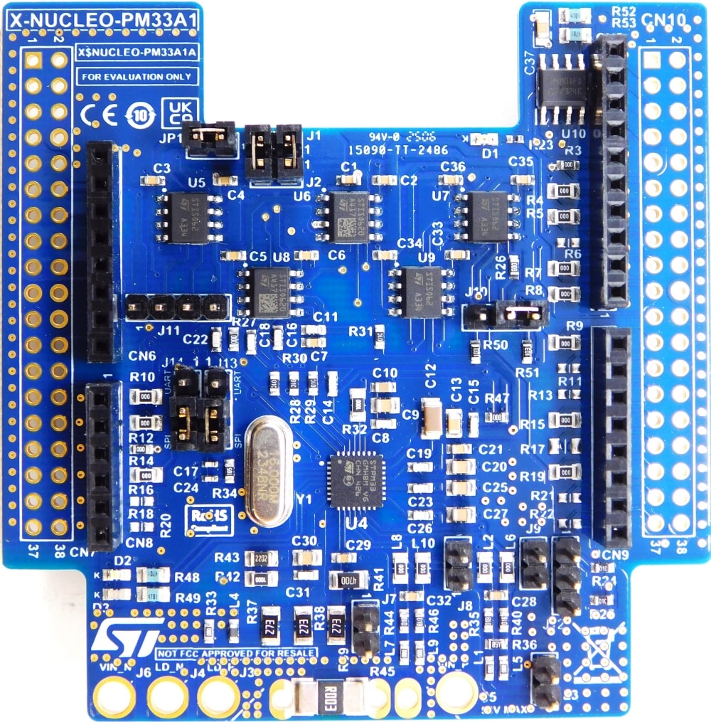 The X-NUCLEO-PM33A1 expansion board is compatible with the Arduino® UNO R3 connector pin assignment and can easily be plugged onto any STM32 Nucleo development board.