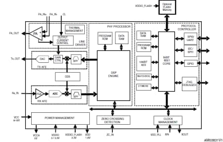 The ST7580 is a flexible power line networking system-on-chip combining a high performing PHY processor core and a protocol controller with a fully integrated analog front-end (AFE) and line driver for a scalable future-proof, cost effective, single chip, narrow-band power line communication solution.