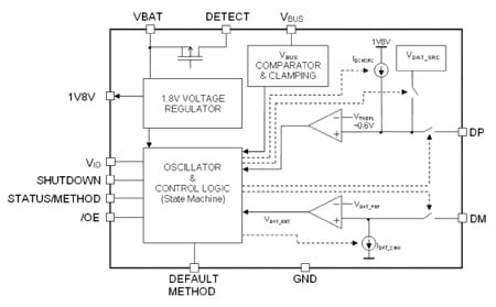 - Capable of detecting dedicated USB chargers and host chargers (current sink and dedicated methods)