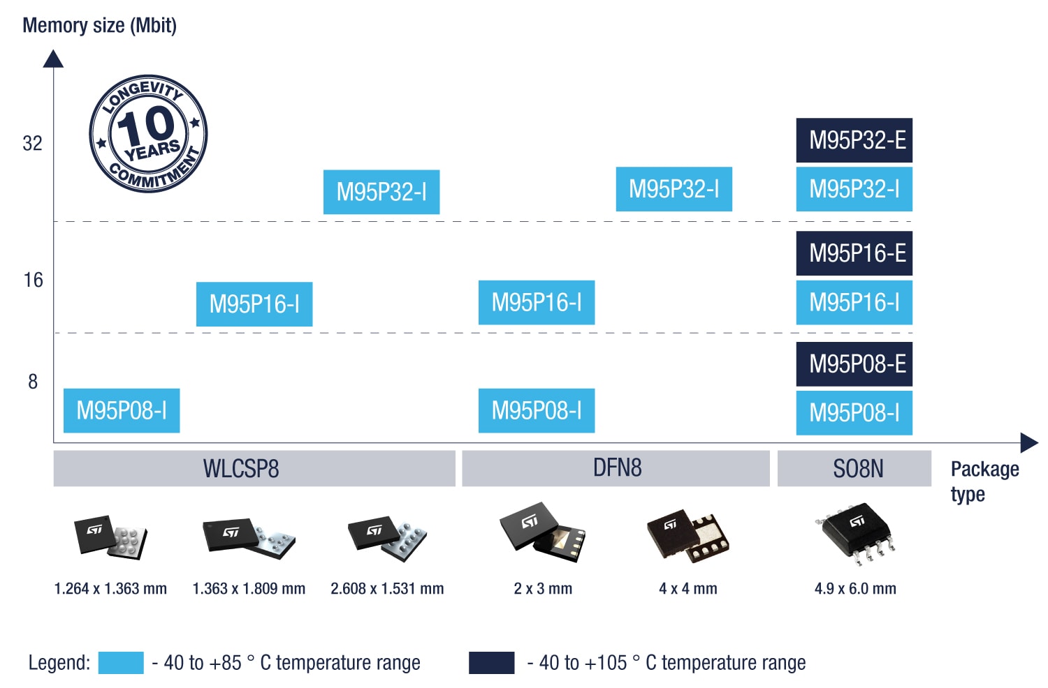 Serial Page EEPROM系列使意法半导体的现有Serial EEPROM产品组合扩展至更高密度:8 Mb到32 Mb。