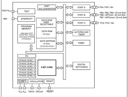 8 Bit ST6 Microcontroller with 4x8-bitADC 1x8-bit TIMER, 1x8-bitAR TIMER