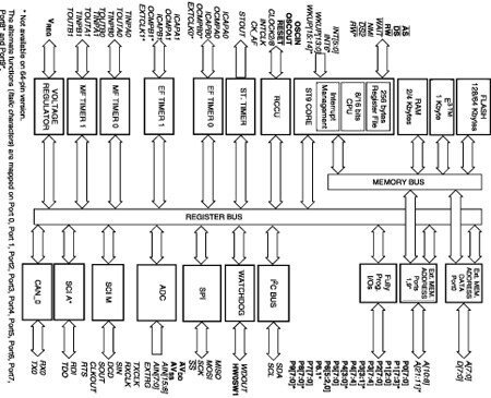 • 224 general purpose registers (register file) available as RAM, accumulators or index pointers