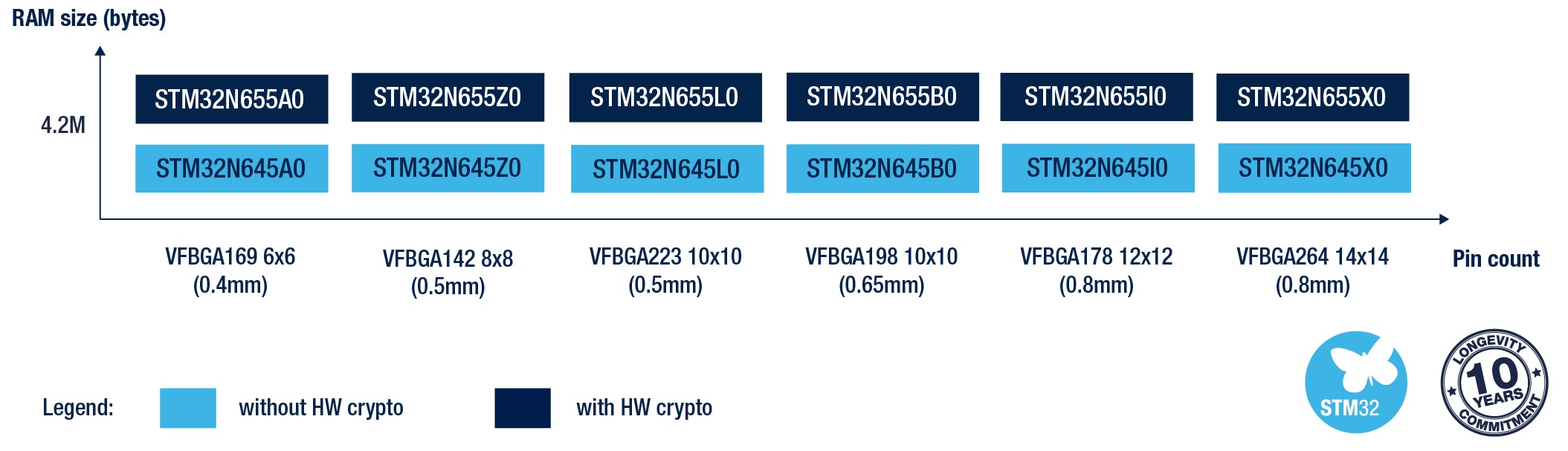 STM32N6x5 MCU采用142至264引脚的VFBGA封装。