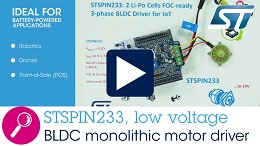 The STSPIN233 device integrates a triple half-bridge low RDS(ON) power stage in a small VFQFPN 3 x 3 x 1.0 mm package ideal for small and space constrained applications.