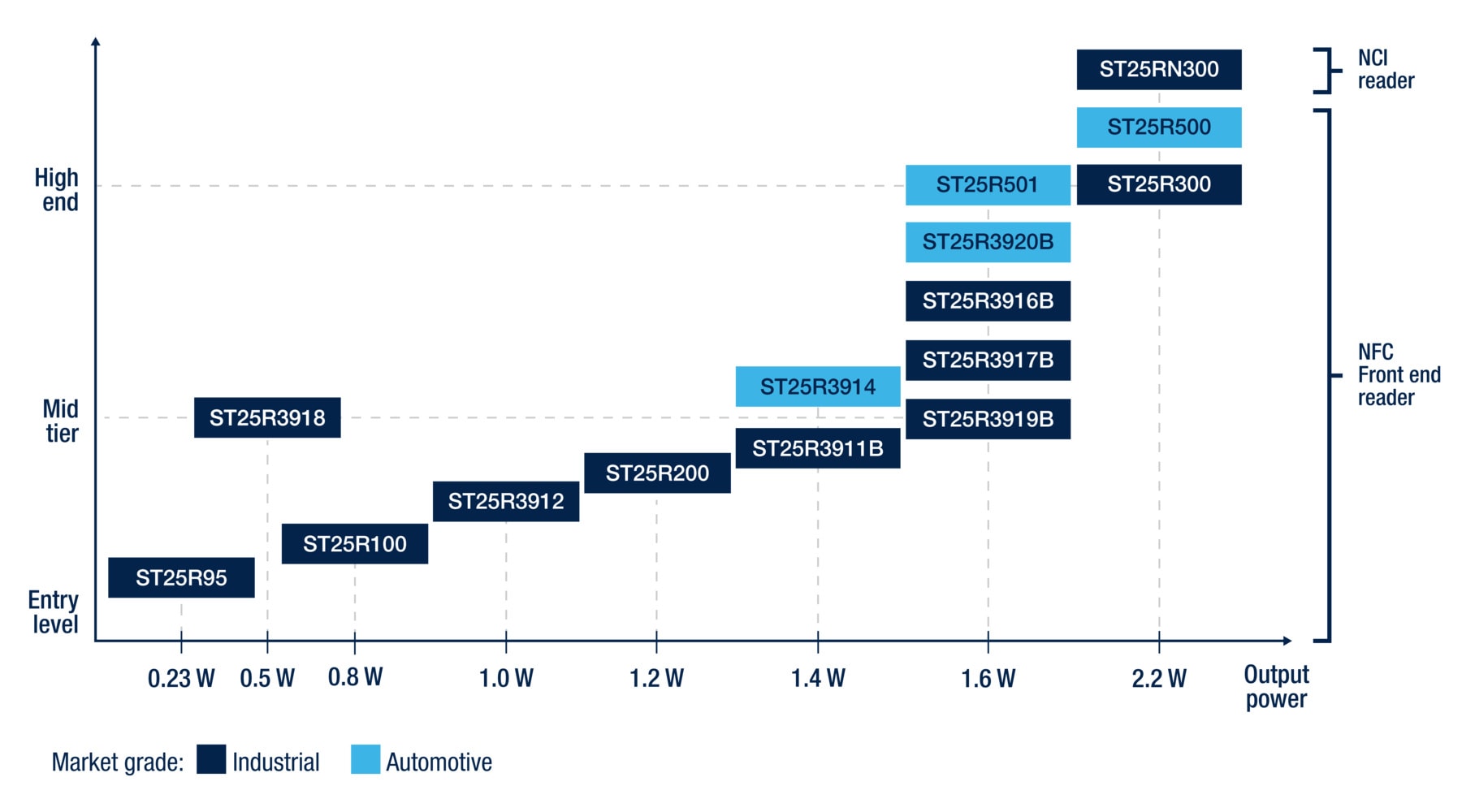作为近场通信 (NFC) 技术的头部供应商,意法半导体拥有丰富的NFC读卡器产品组合。ST25R系列包含多种NFC前端读卡器及NCI读卡器(NFC控制器接口),专为嵌入式应用设计,如支付、消费类、工业和车规级解决方案。