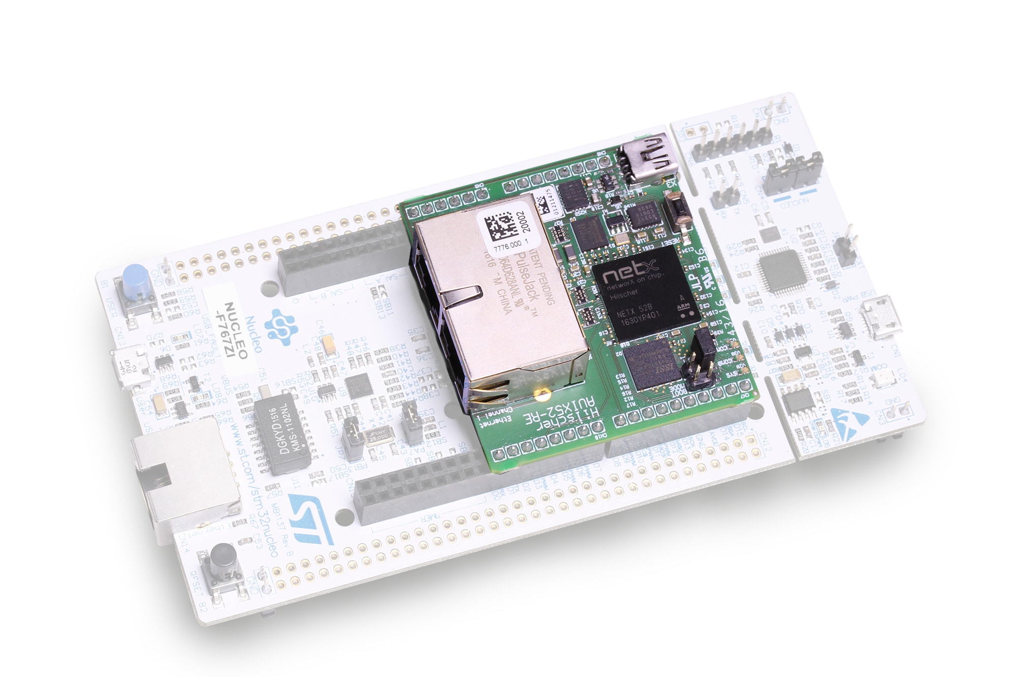 I-NUCLEO-NETX netSHIELD 90-RE is an STM32 Nucleo expansion board with Arduino-compatible connectors.