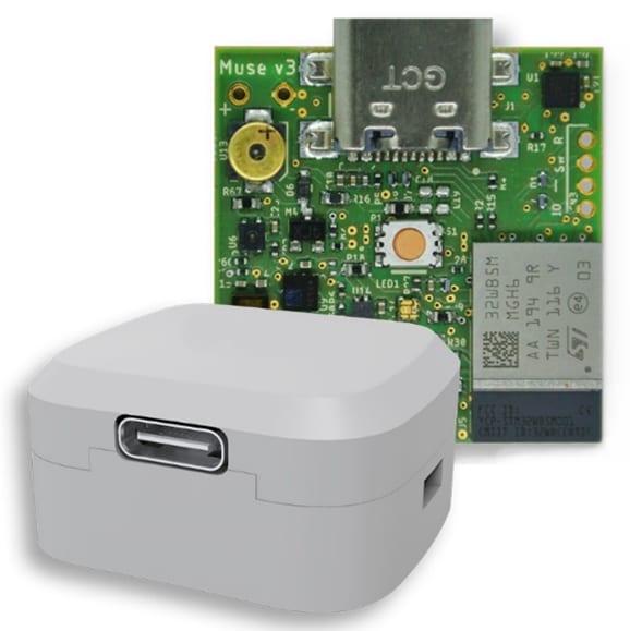 Muse是一款多传感器无线IMU,带有板载Flash存储器、BLE和嵌入式处理器,适用于各种数据采集和处理任务。Muse尺寸仅为22 x 22 mm,可以将其安装在产品中,将产品转变为创新的智能设备,也可以用作独立IMU,外壳可选配。