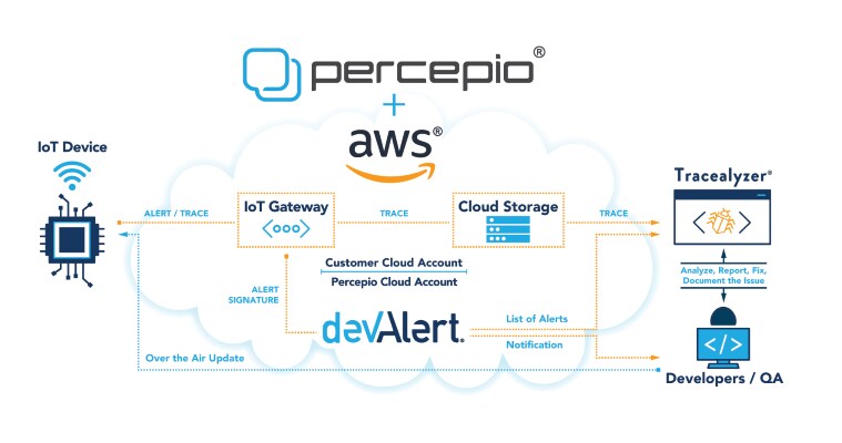 Percepio DevAlert提供带远程诊断功能的物联网设备监控服务,用于系统测试、现场测试和部署。DevAlert会将物联网软件中的重要异常(如运行时错误)通知开发人员,并提供记录,用于可视化跟踪诊断。一旦改进型解决方案就绪,即可通过云连接将其作为无线更新进行分发。
