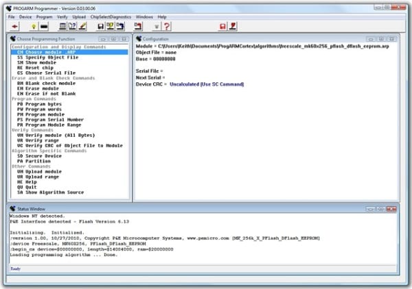 PROG独立软件便于用户使用PEmicro兼容的硬件调试探头对外部Flash存储器器件进行在线编程/重新编程。PROG软件包括一个完全交互式编程器和一个用于脚本编程的命令行执行器CPROG。
