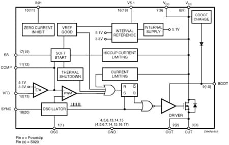 - Internal current limiting (pulse by pulse and HICCUP mode)
