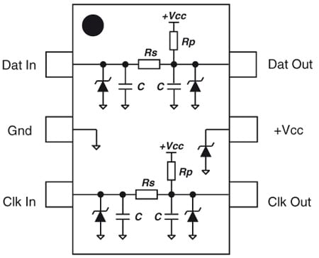 - 数据线和时钟线的集成低通滤波器
