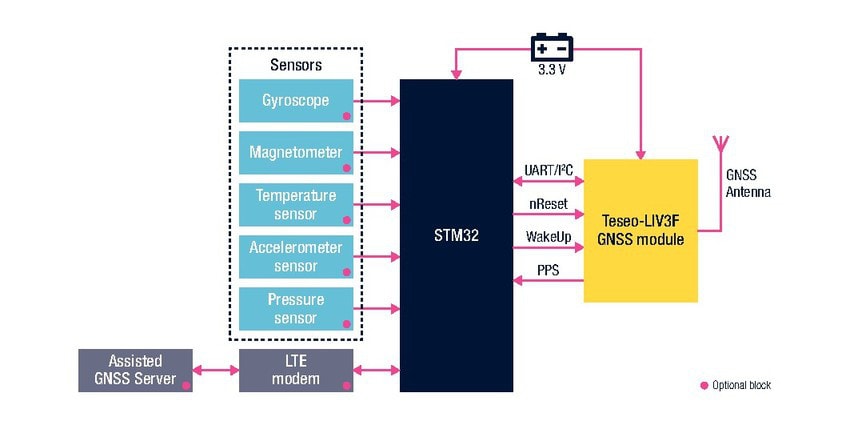 Available pre-programmed and pre-configured, these GNSS modules provide superior accuracy thanks to the on-board 26 MHz temperature-compensated crystal oscillator (TCXO) and a reduced Time To First Fix (TTFF) due to a dedicated 32-kHz Real Time Clock (RTC) oscillator.