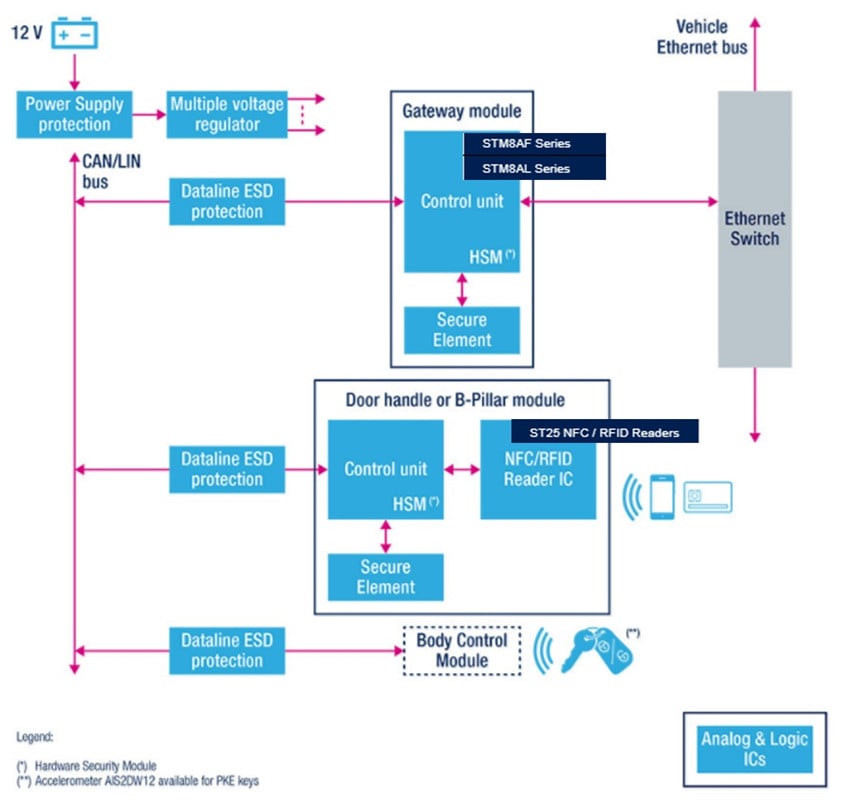 - Automotive grade qualified ST25R3914/15 NFC Reader ICs and STM8A MCU