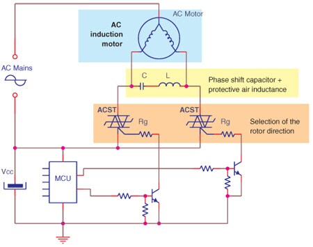 The ACST8 series belongs to the ACS/ACST power switch family built around A.S.D. (application specific discrete) technology. This high performance device is suited to home appliances or industrial systems and drives an induction motor up to 8 A.