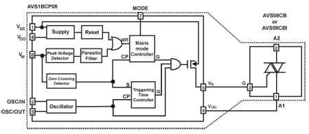 50/60Hz FULL COMPATIBILITY INTEGRATED VOLTAGE REGULATOR TRIGGERING PULSE TRAIN OF THE TRIAC PARASITIC FILTER LOW POWER CONSUMPTION - TRIAC