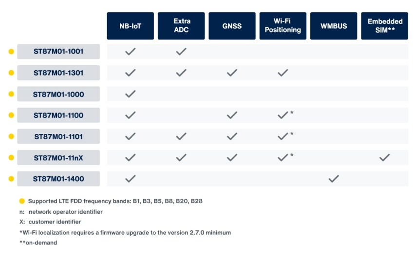 ST87M01是一款高性能、完全可编程、超紧凑、低功耗的LTE Cat NB2 NB-IoT工业模块系列,可提供全面的全球频带覆盖和高级安全功能。ST87M01系列旨在满足各种应用需求,提供多种可配置选项,包括GNSS、Wi-Fi定位、嵌入式SIM卡和无线M-Bus (WBUS)。